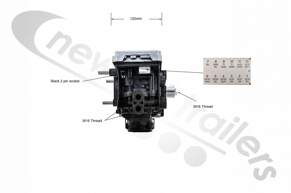 | This variant is used on trailers which have a lift axle. It has the extra pneumatic port to control the lift axle. |