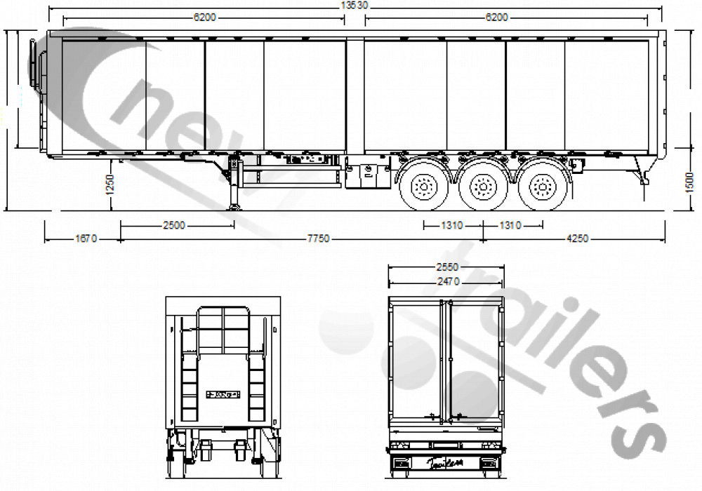 3 centre crossbars in the trailer. (normally spaced 1 x 300mm from front, 1 x 300mm meter from rear, 1 x center of trailer (used for automatic sheet sytems)).